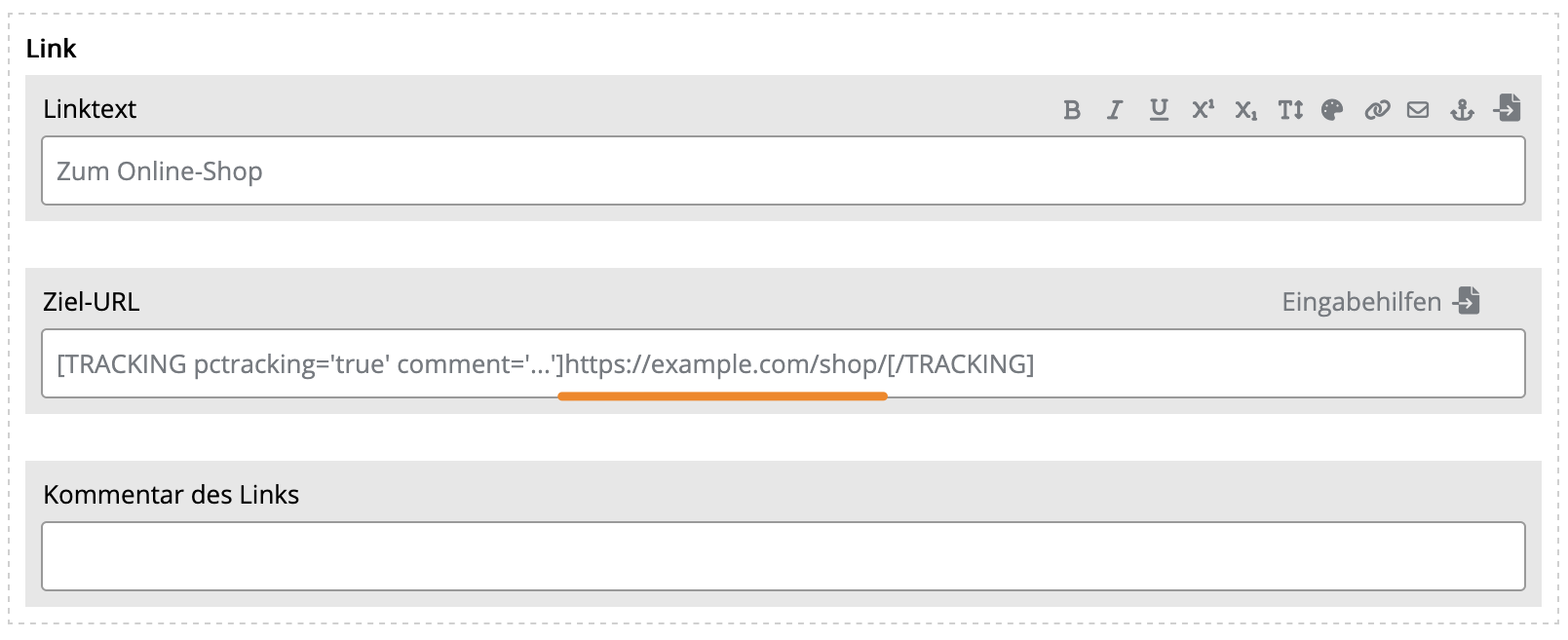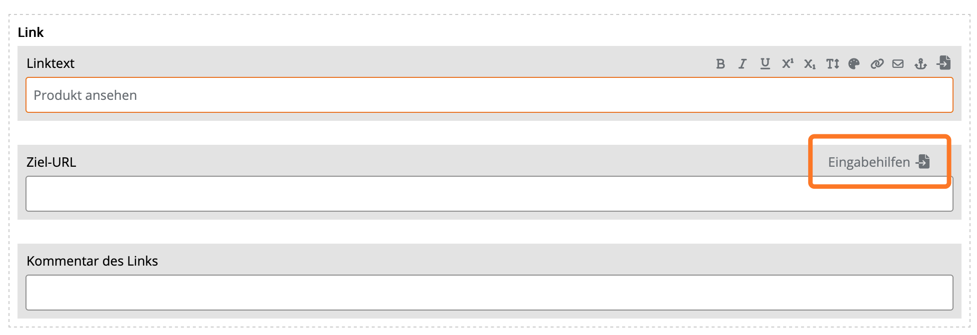Öffne im Mailing den Link, den du verfolgen möchtest. In den Einstellungen des gewünschten findest du die Ziel-URL. Öffne dort die Eingabehilfen.