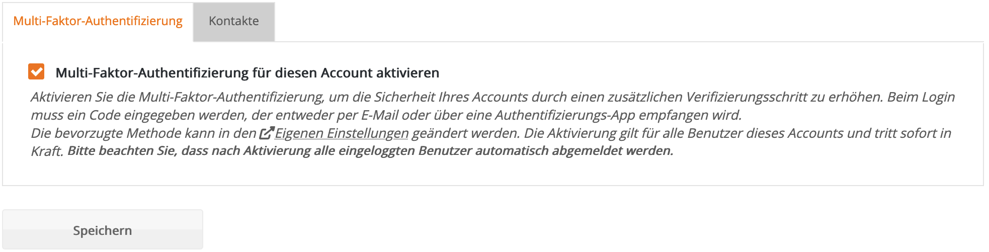 Die MFA kann nur durch Benutzer mit Administrator-Recht aktiviert werden.