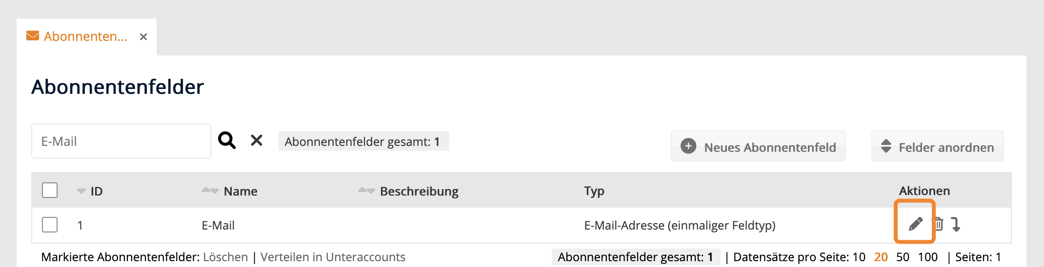 Schritt 1: Abonnentenfeld anlegen