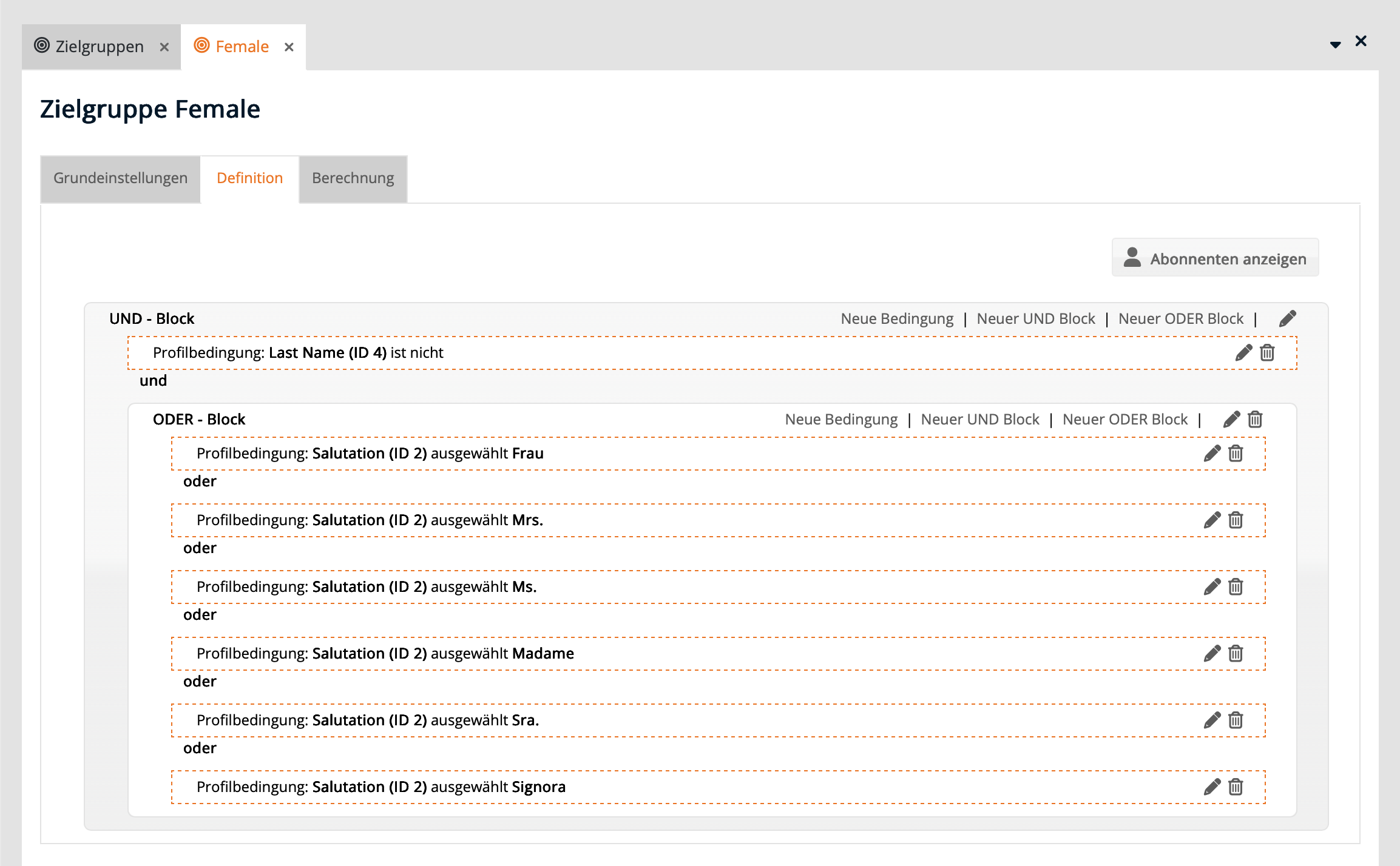- Zielgruppen basieren auf Abonnentenfeldern.